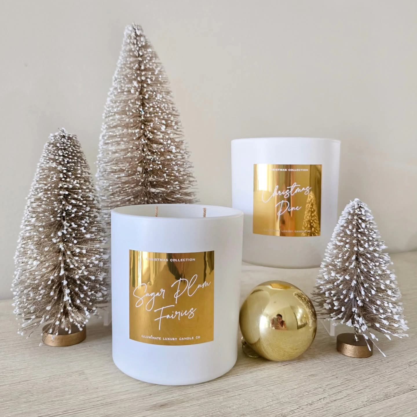 Beautiful matte white vessels filled with our limited edition Christmas fragrances. Each candle is individually gand poured with pure soy wax, lead free cotton wicks and premium fragrance oil. Available in 12 festive scents š