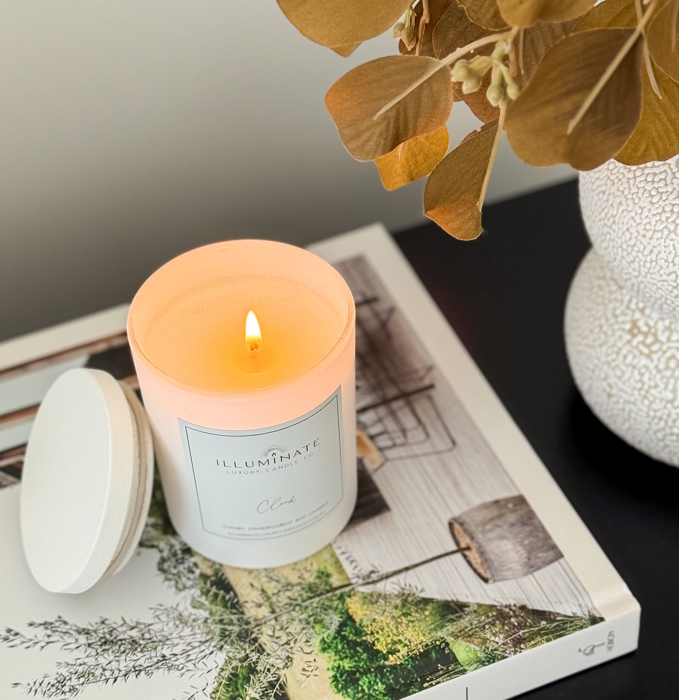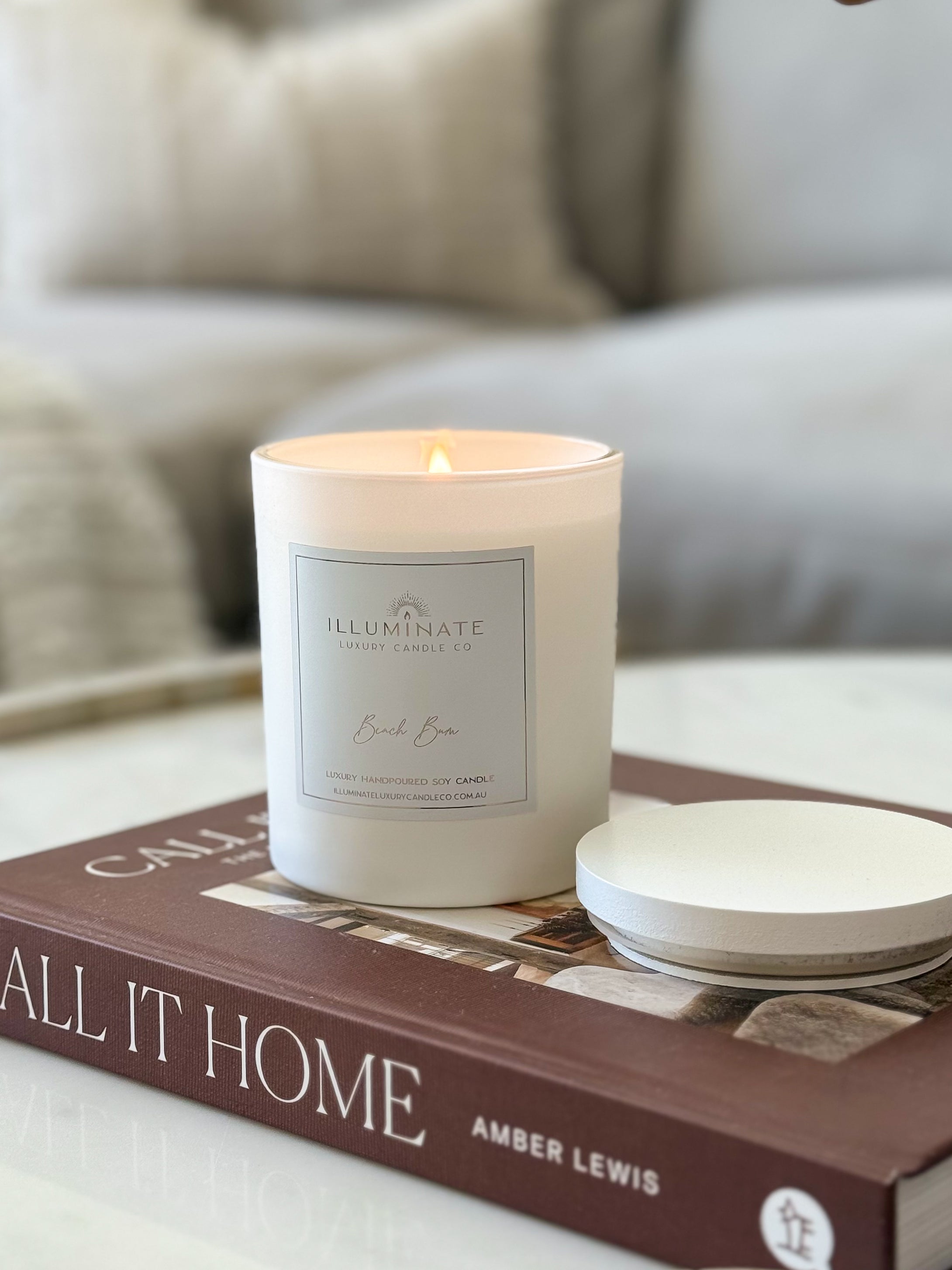 Our signature collection soy candles are the perfect addition to any room. Elegant matte white vessels, finished with a timber lid. When lit the flame creates a gorgeous glow through the glass. Perfect for a minimalistic look in your home.